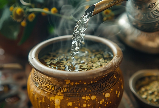 Ce récipient naturel, souvent décoré de cuir ou d’argent, conserve la chaleur et préserve les arômes complexes de l’infusion.